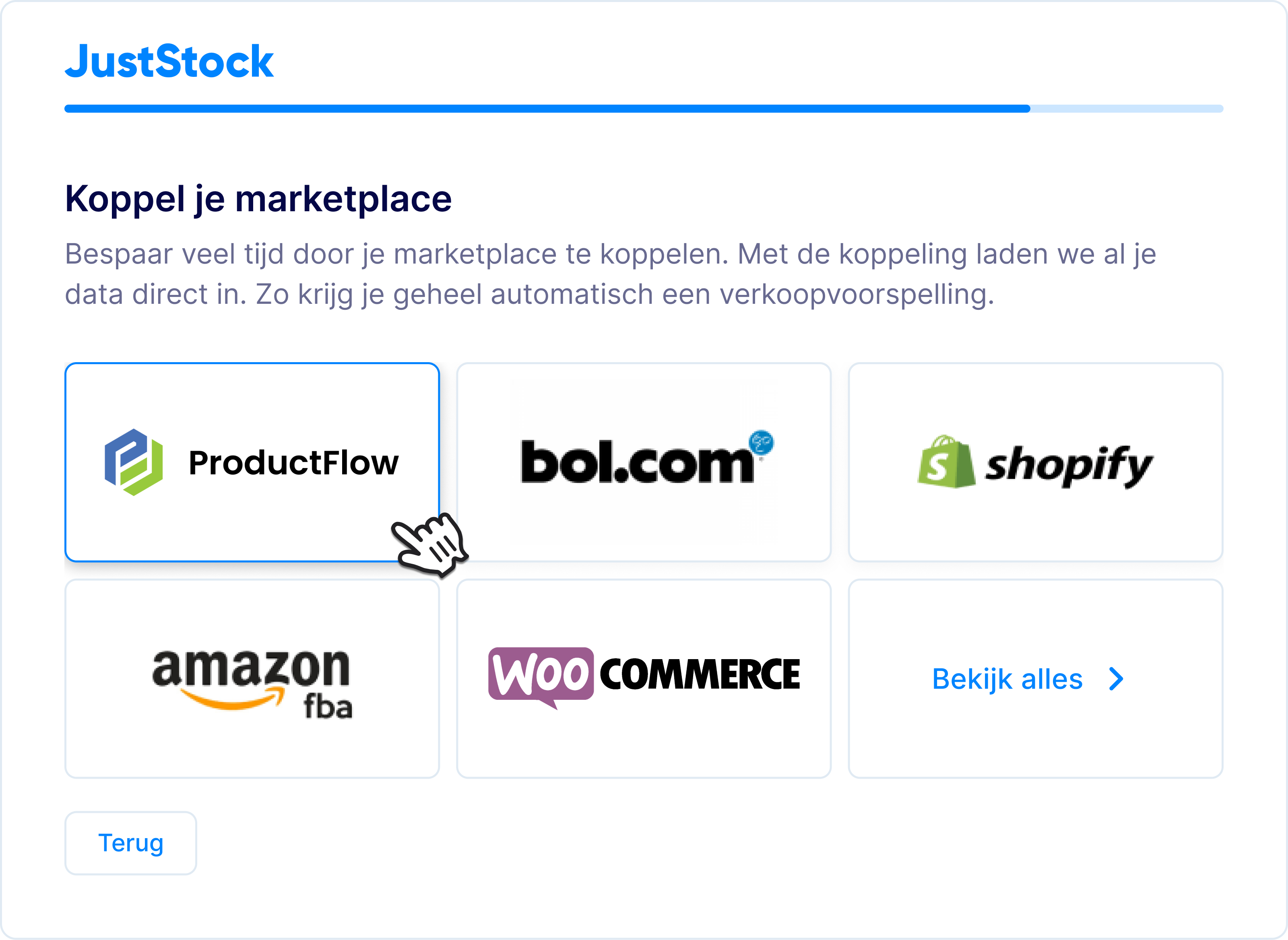Met de ProductFlow-koppeling synchroniseer je moeiteloos je voorraad van verschillende locaties met JustStock. Zo blijft je warehouse- en fulfilmentvoorraad altijd actueel.